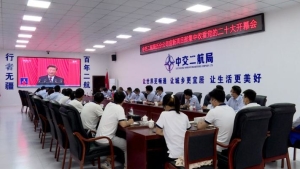 中交二航局湖南省官新高速公路第七合同段项目部集中收看党的二十大开幕